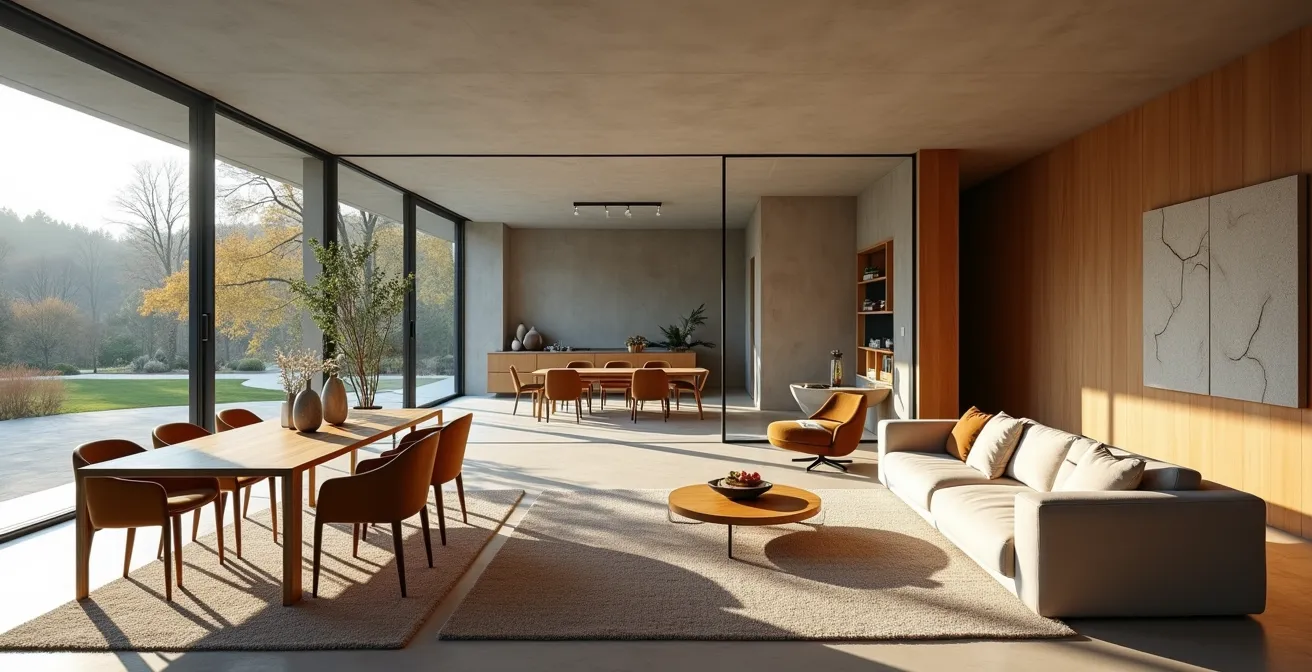 Die Vorstellung von Akustikpaneelen ruft oft Bilder von grauen, funktionalen Platten hervor, die eher in ein Tonstudio als in ein stilvolles Wohnzimmer passen. Doch diese Zeiten sind vorbei. Das moderne Konzept der Schall-Tarnung verbindet hocheffektive Schallabsorption mit anspruchsvoller Ästhetik. Anstatt die akustischen Helfer zu verstecken, werden sie bewusst als Designelemente inszeniert. Der Trick besteht darin, sie nicht als technische Notwendigkeit, sondern als integralen Bestandteil der Wandgestaltung zu betrachten.